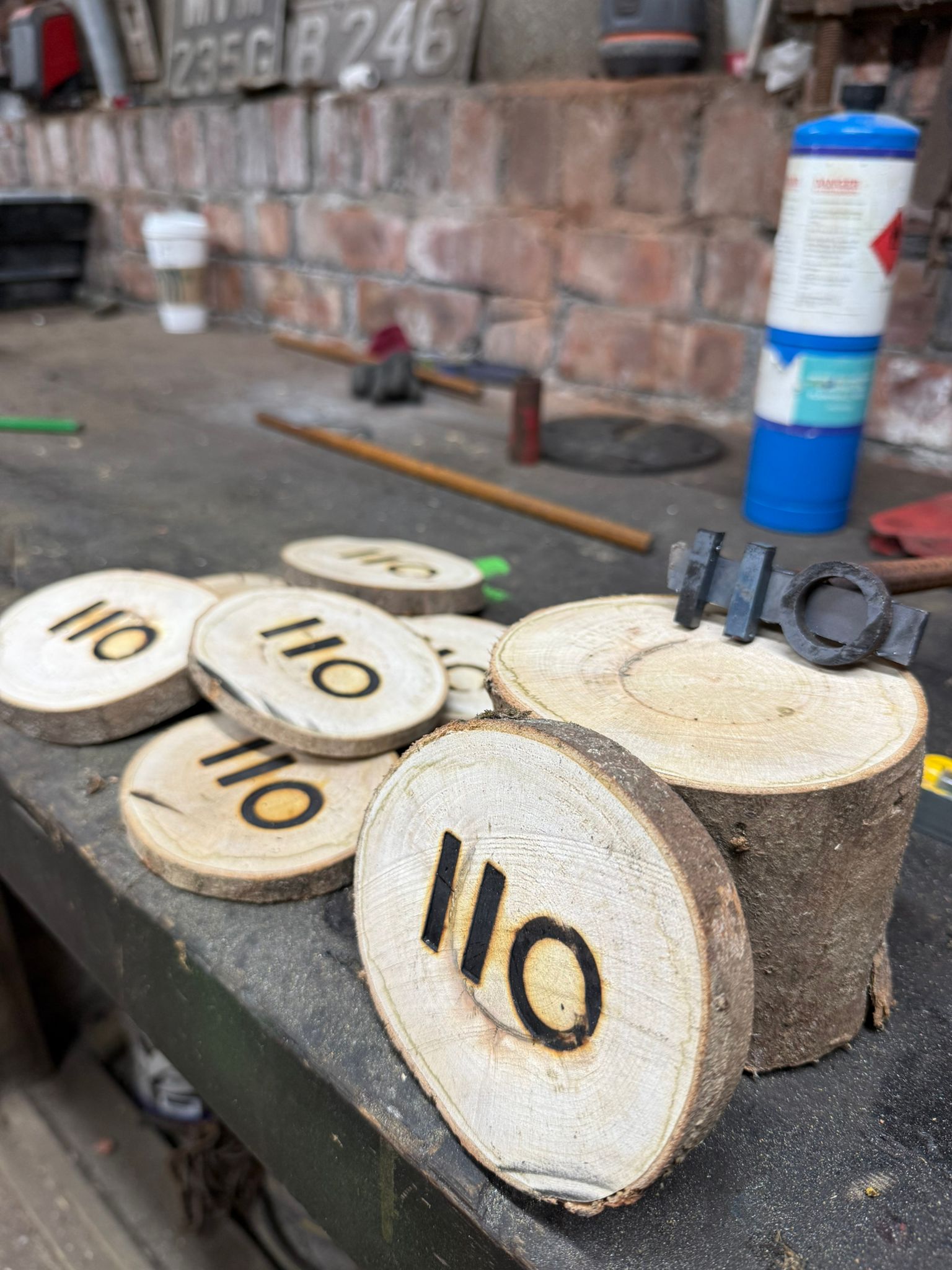 These 110 coasters are crafted from real logs cut right on the 110, giving each piece a unique, natural look. Every coaster is individually sliced from the log and then finished with the 110 logo heat-pressed into the surface, creating a bold branded mark while keeping the natural rustic wood feel.